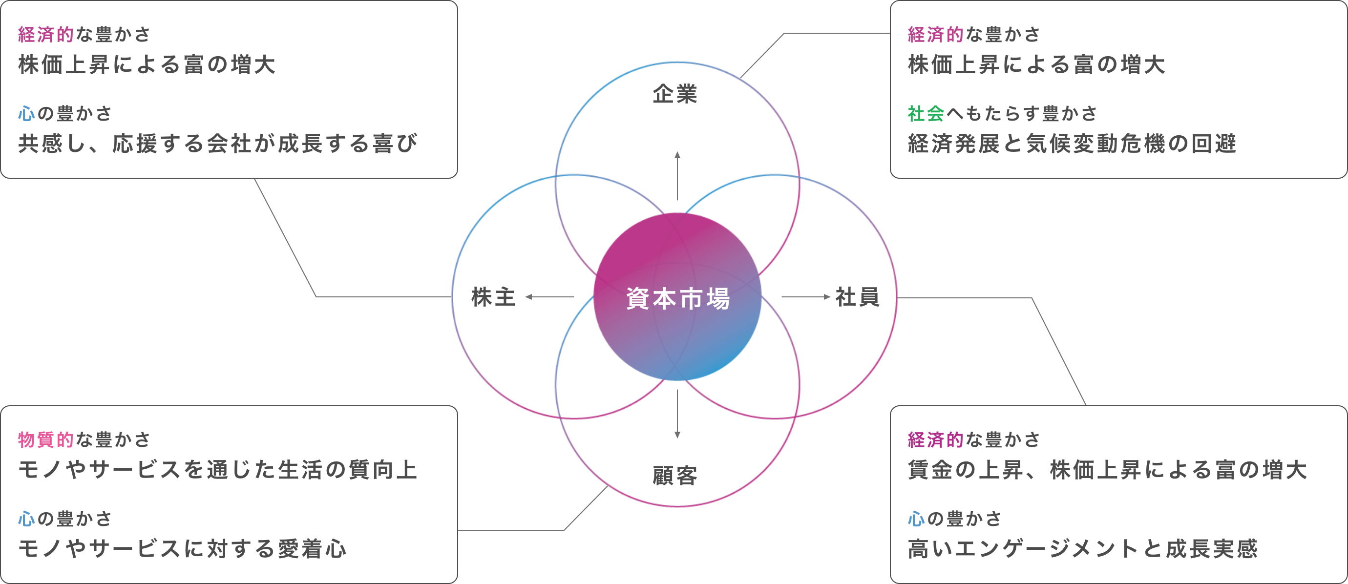 株主に限られない様々なステークホルダーが、経済的なものだけではない「豊かさ」を享受できる。